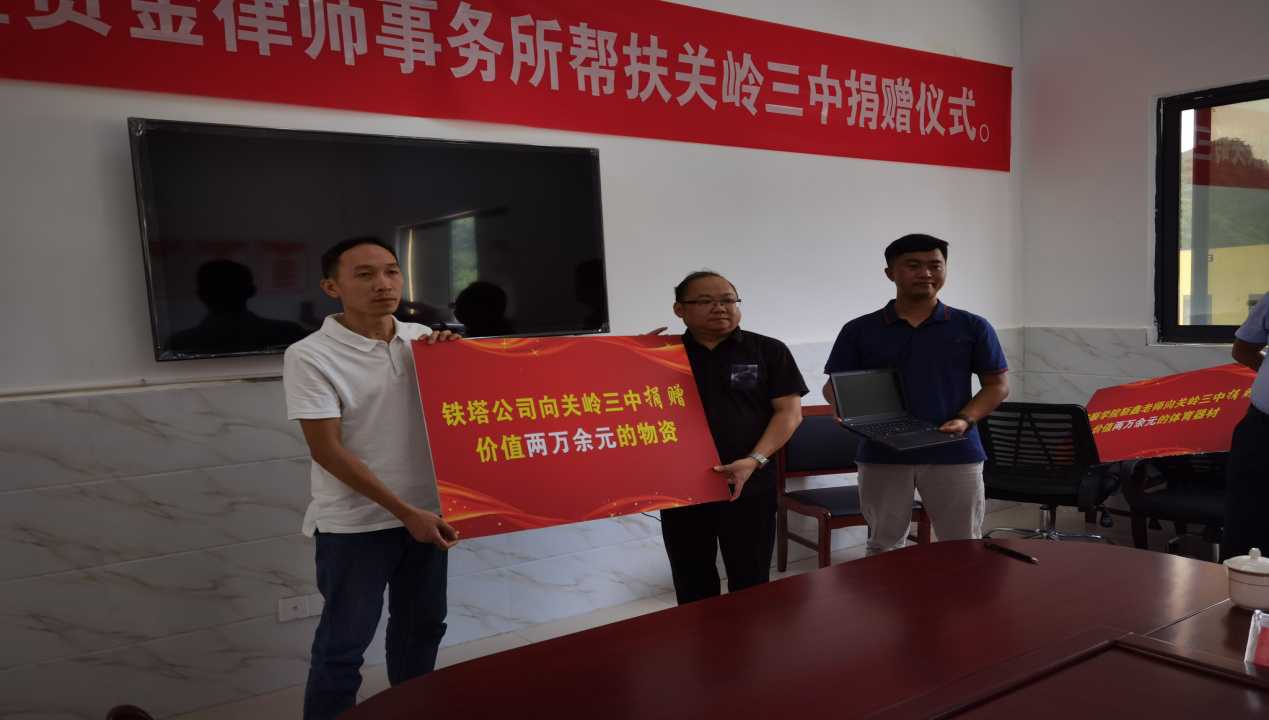据悉,中国铁塔股份有限公司安顺市分公司主要经营铁塔建设、运营及两翼业务,一直致力于安顺市脱贫攻坚工作,近年来,公司投资3.74亿元解决农村的信号覆盖问题,共计投资建设村级基站3266个,抽调人员全力完成了安顺市相关地方政府脱贫验收通信保障。此次铁塔集团向关岭三中捐赠11台笔记本电脑,价值2,6000余元,靳鑫老师捐赠了20000余元的体育器材。